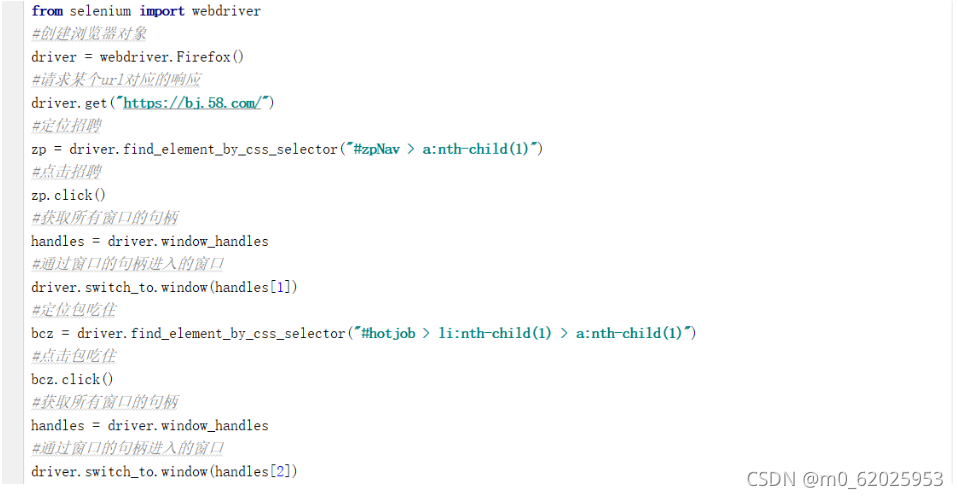 2)通过窗口的句柄进入的窗口 driver.switch_to_window(handles[n])