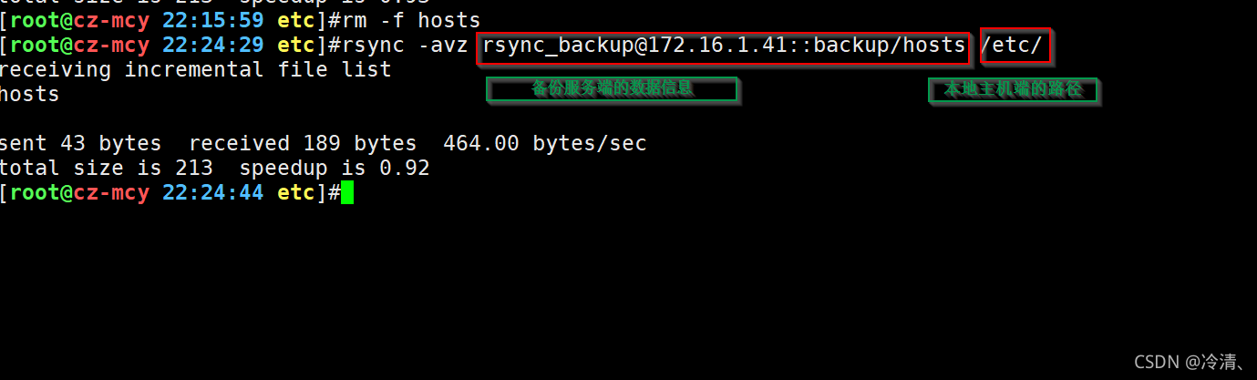 rsync -avz rsync_backup@172.16.1.41::backup/hosts /etc/