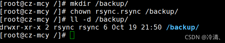 chown rsync.rsync /backup/ #将备份目录的属主和属组全部改成之前创建的管理用户rsync,由它来管理备份目录。