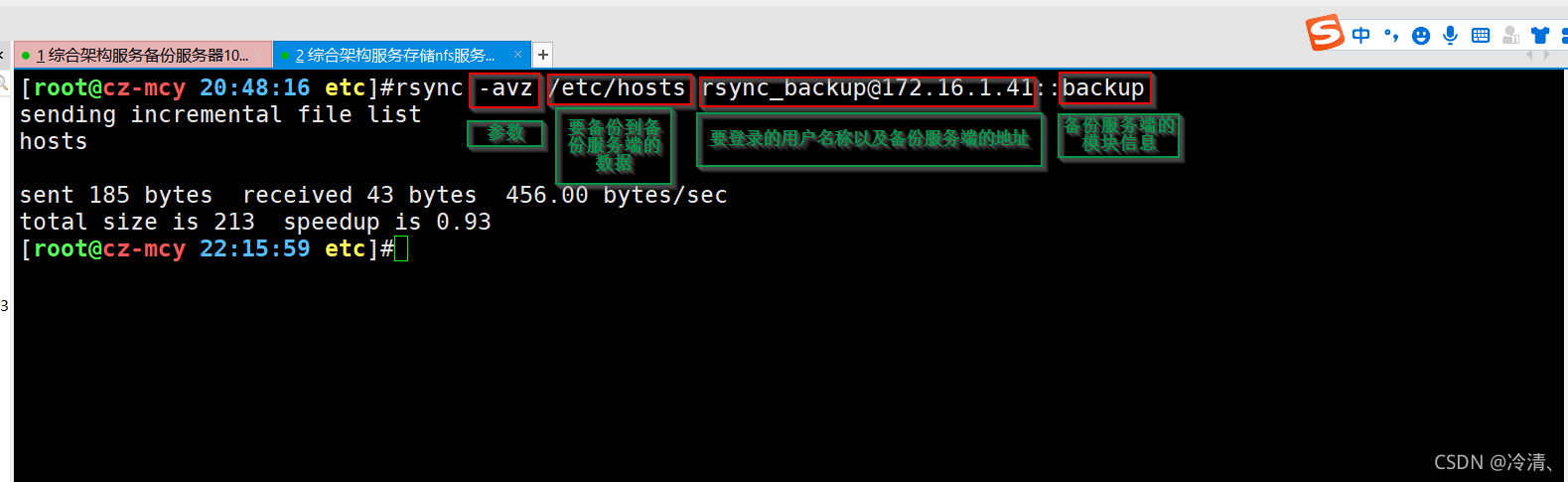rsync -avz /etc/hosts rsync_backup@172.16.1.41::backup