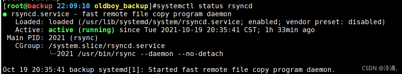 可使用systemctl status rsyncd 查看rsync的状态,若显示为actice,则启动成功,可以进行使用!?