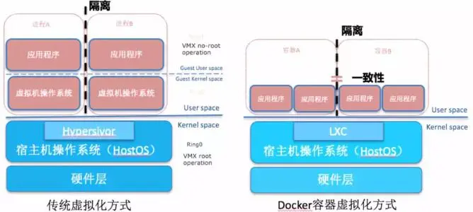 对于个精简的OS,rootfs可以很小,只需要包合最基本的命令,工具和程序库就可以了,因为底层直接用 Host的kernel,自己只需要提供rootfs就可以了。由此可见对于不同的Linux发行版, boots基本是一致 的, rootfs会有差別,因此不同的发行版可以公用bootfs. 虚拟机是分钟级别,容器是秒级!