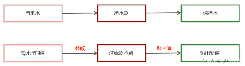 {{ name | fifter }} //过滤器语法类似管道操作符,它的上一个输出作为下一个输入