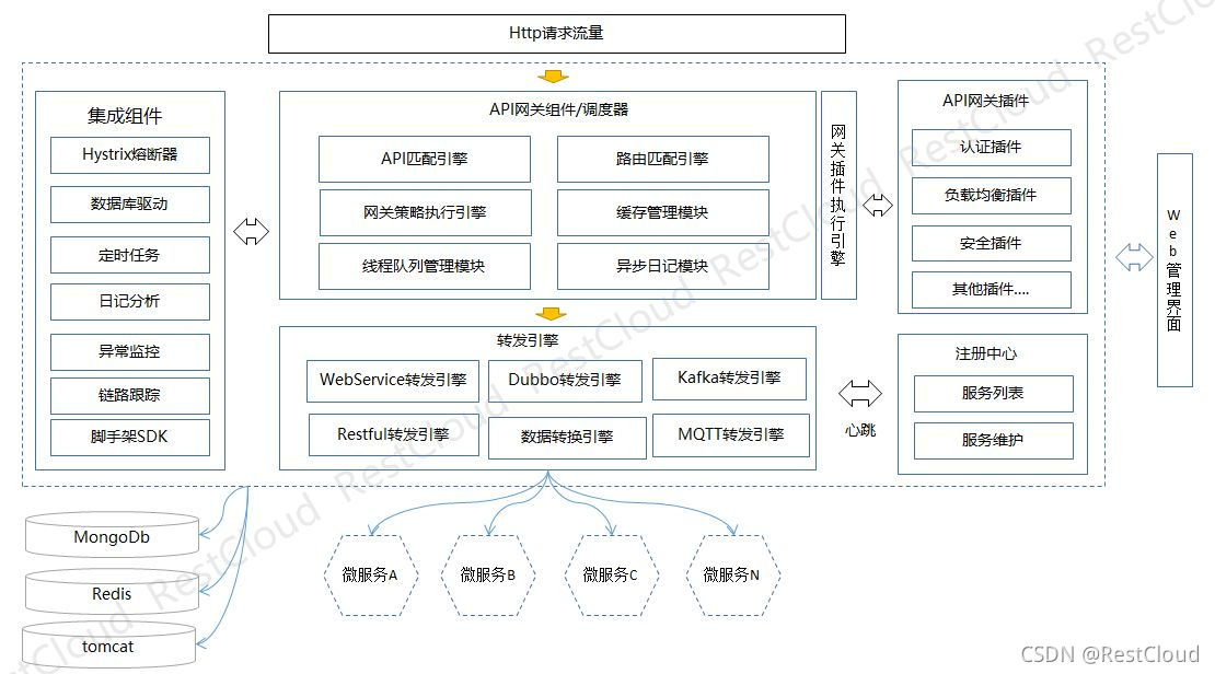 RestCloud API网关产品是国内最早完全基于Java语言自主研发的企业级API网关,其具高稳定性、高性能、易于维护等特点、API网关产品作为所有业务系统API流量的统一入口,承担着非常重要的数据传输及多协议转换工作,API网关最核心的作用是对服务进行路由并进行数据转发,API网关将成为前后端交互以及内外网交互的唯一数据进出口,所以API网关适合于进行服务鉴权、数据缓存、流量控制、日记记录、熔断控制、协议转换等。