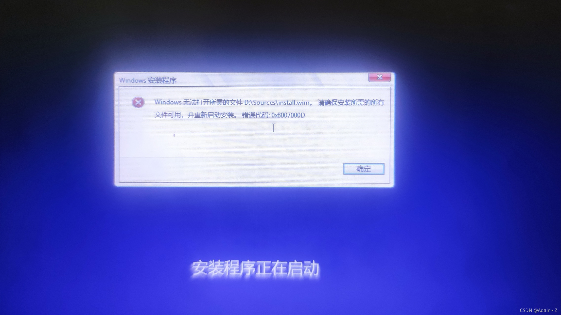 没在意上述问题就跳过了,安装时出现提示install.wim文件找不到。