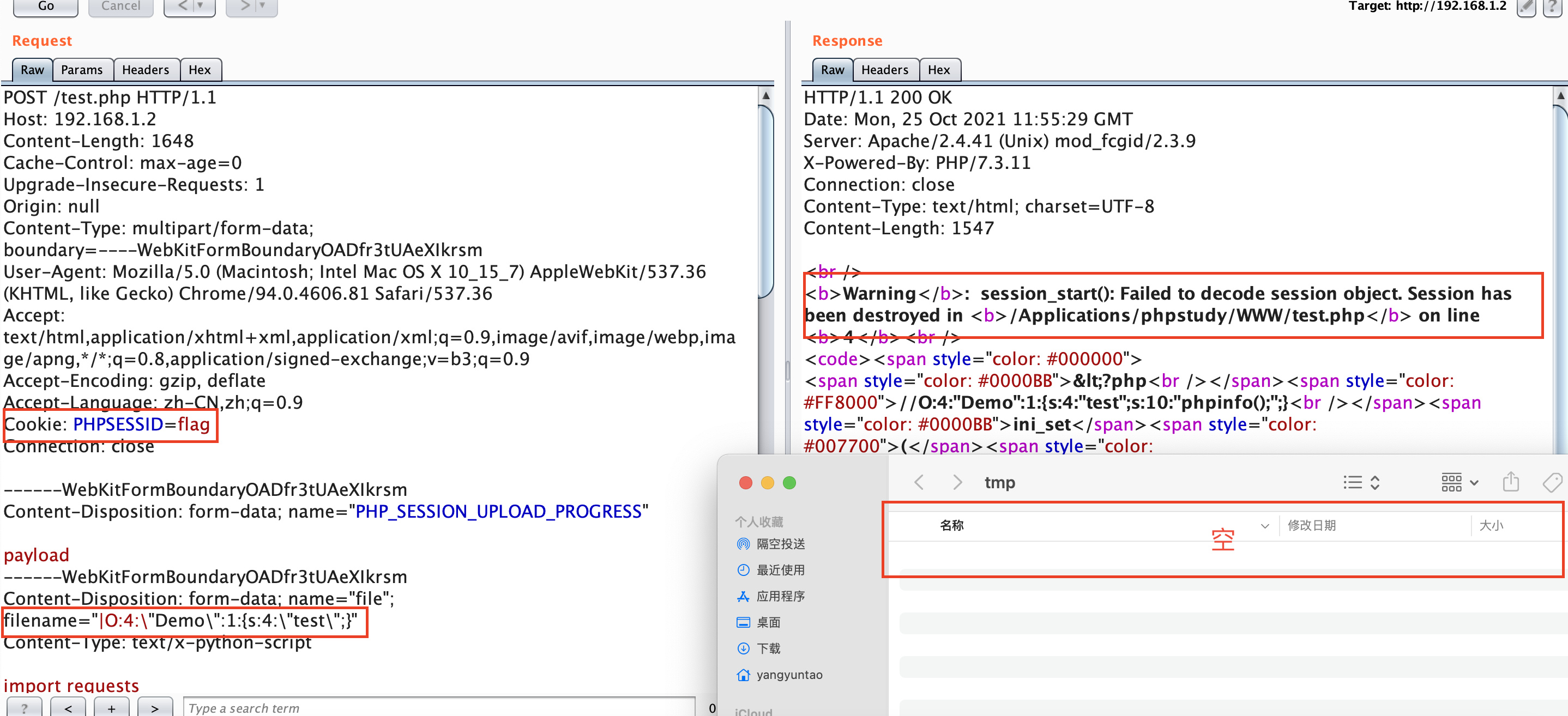 所以利用session上传进度设置session文件内容时,不管页面的ini_set('session.serialize_handler', 'php');设置为php还是php_serialize,都是按照php.ini里面的session.serialize_handler来设置的。