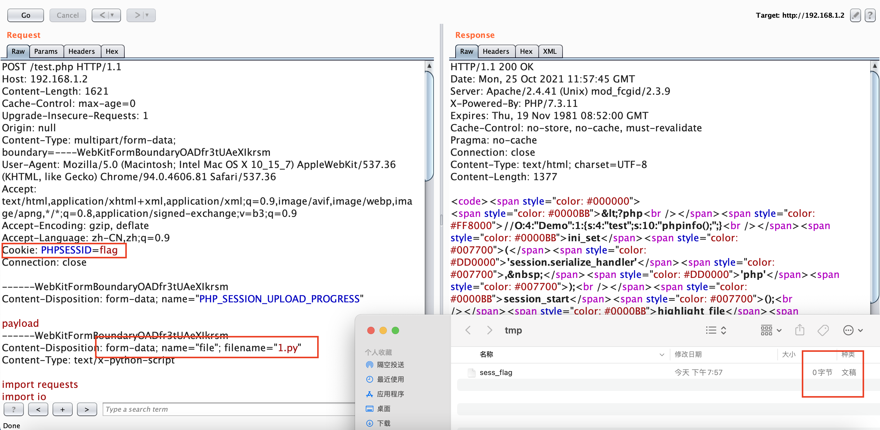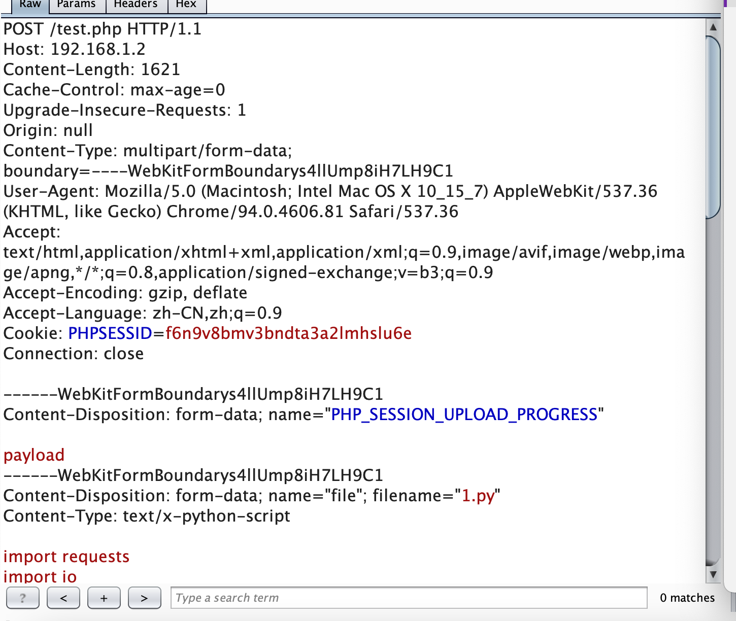 原因:没有PHPSESSID是因为在使用session上传进度之前我们删除了目标页面对应的PHPSESSID,没有的话自己加上也是可以的