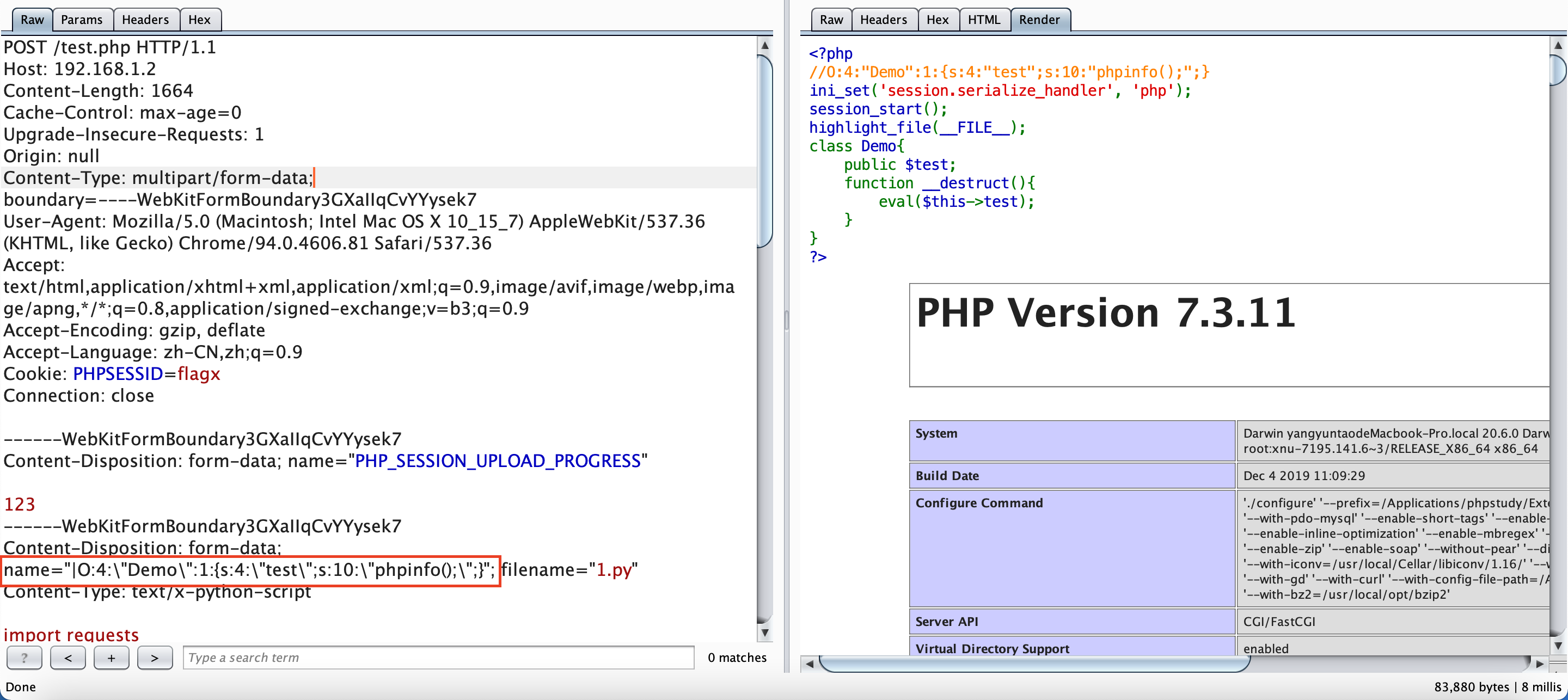 upload_progress_payload|a:5:{s:10:"start_time";i:1635170618;s:14:"content_length";i:1668;s:15:"bytes_processed";i:1668;s:4:"done";b:1;s:5:"files";a:1:{i:0;a:7:{s:10:"field_name";s:4:"file";s:4:"name";s:45:"|O:4:"Demo":1:{s:4:"test";s:10:"phpinfo();";}";s:8:"tmp_name";s:26:"/private/var/tmp/phpirELYU";s:5:"error";i:0;s:4:"done";b:1;s:10:"start_time";i:1635170618;s:15:"bytes_processed";i:1312;}}}