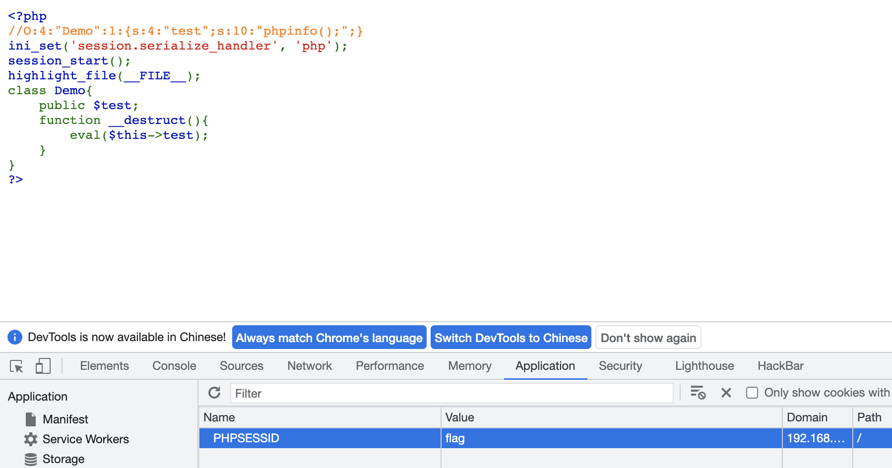 这里因为有sess_start(),所以会自动创建一个PHPSESSID,我把它的值修改为flag