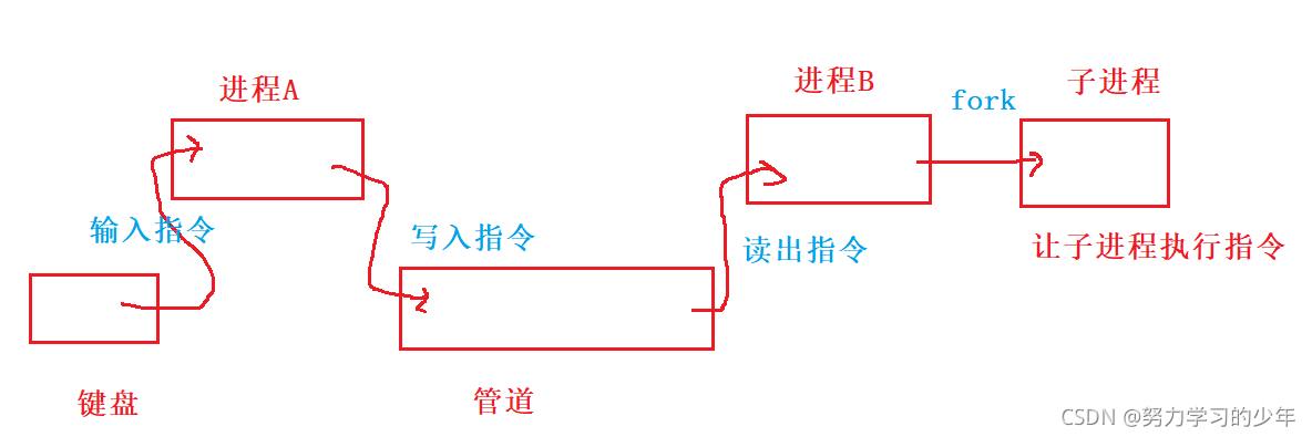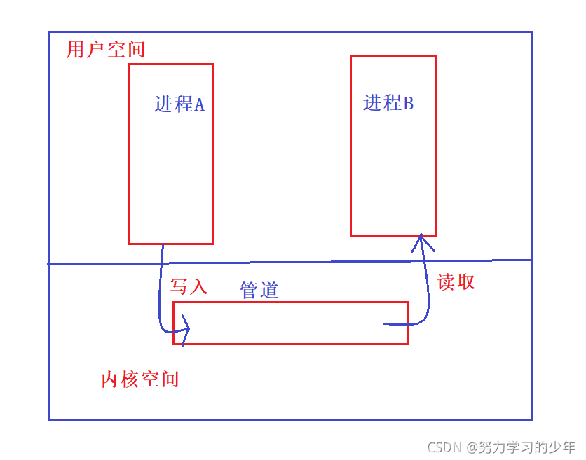 所谓的管道,是内存中的一个缓存文件,进程A在管道写入数据,实际是写入到内核中的缓存文件中,进程B从管道中读取数据,实际是从内核的缓存文件中读取数据。