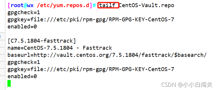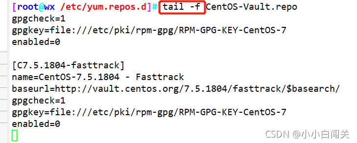 [root@wx /etc/yum.repos.d]# tail -f CentOS-Vault.repo