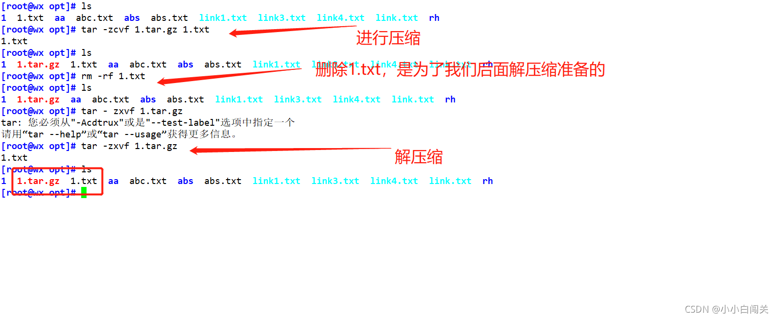 tar -zxvf 归档文件(压缩包,xxx.tar.gz)? ? ? ? ? ? ? ### [-C 其他已存在的目录]