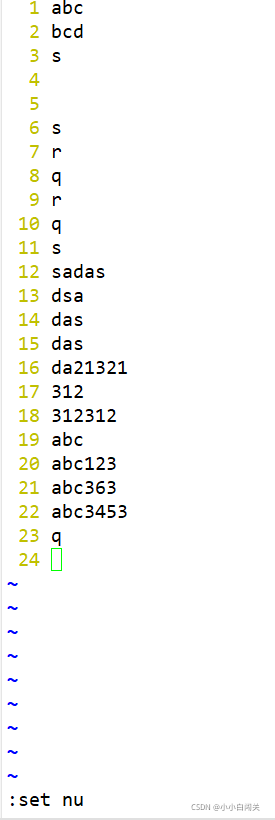 - 末行模式:该模式中可以设置vi编辑环境、保存文件、退出编辑器,以及对文件内容进行查找、替换等操作。处于末行模式时,vi编辑器的最后行会出现冒号“:”提示符。