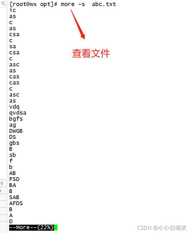 结合管道操作使用时(例:ls -R/etc/? |more)