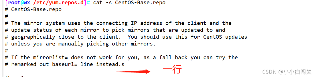 [root@wx /etc/yum.repos.d]# cat -s CentOS-Base.repo