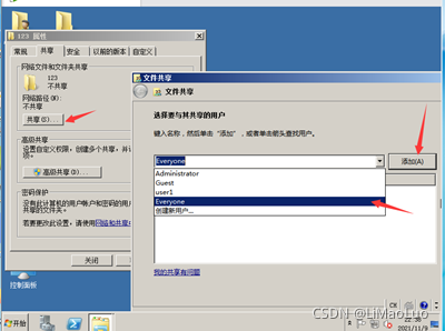 - 点击共享--选择Everyone--添加Everyone所有人