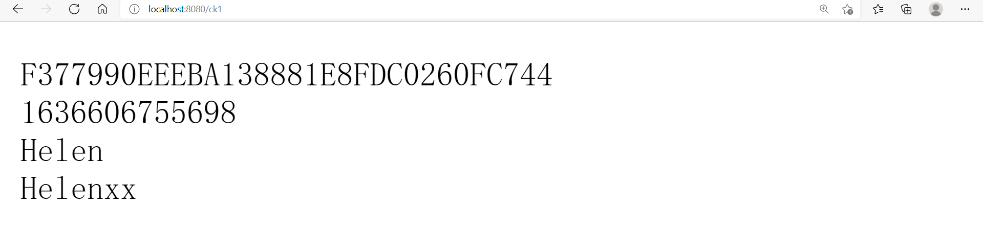 ? ? ? ? 可见我们所储存的cookie已经成功取出。前2个cookie则是打开浏览器时自带的cookie。