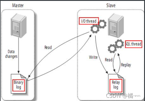 - MySQL slave 将 master 的 binary log events拷贝到它的中继日志(relay log)