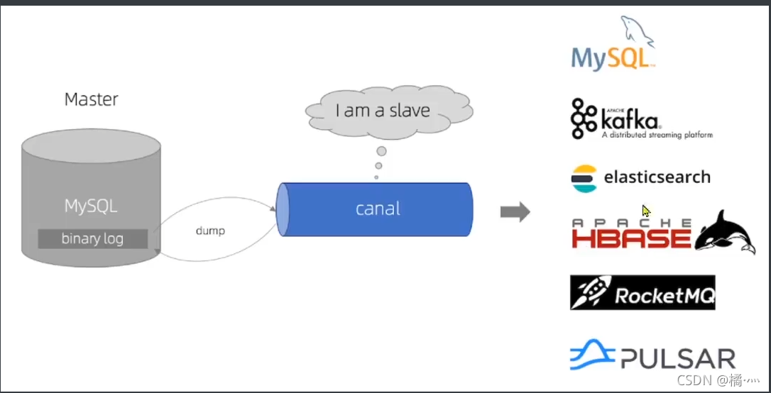 Canal就是把自己伪装成MySQL的一个slave节点,从而监听master的binary log变化。再把得到的变化信息通知给Canal的客户端,进而完成对其它数据库的同步。
