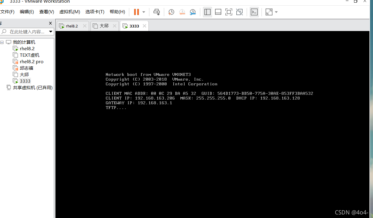 首先创建一个虚拟机,然后直接打开,可以看见它一步步完成DHCP,http://192.168.163.128等。