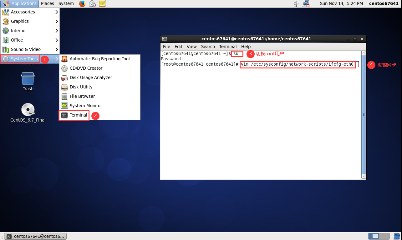 CentOS 6.7 64位系统: bridged(桥接模式):