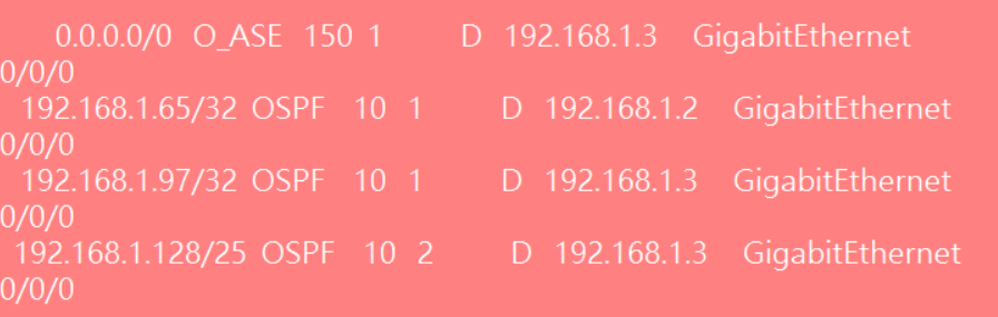 ?????????上图的前两个地址为r1自己所属的区域(area0)通过OSPF获得的路由信息,最后一个地址