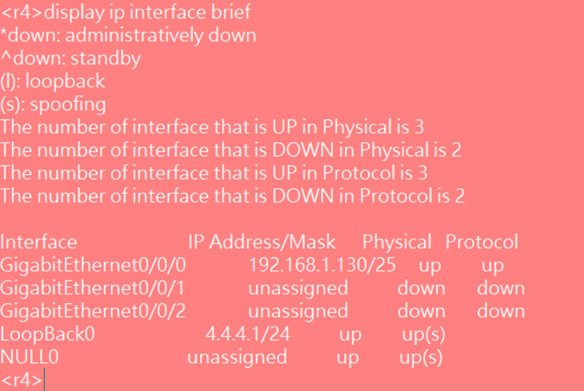[r1-GigabitEthernet0/0/0]ospf dr-priority 0 [r2-GigabitEthernet0/0/0]ospf dr-priority 0 [r4-GigabitEthernet0/0/0]ospf dr-priority 0 ? - 宣告,根据要求,不能宣告4.4.4.0/24