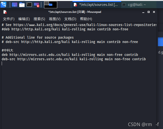deb http://mirrors.ustc.edu.cn/kali kali-rolling main non-free contrib