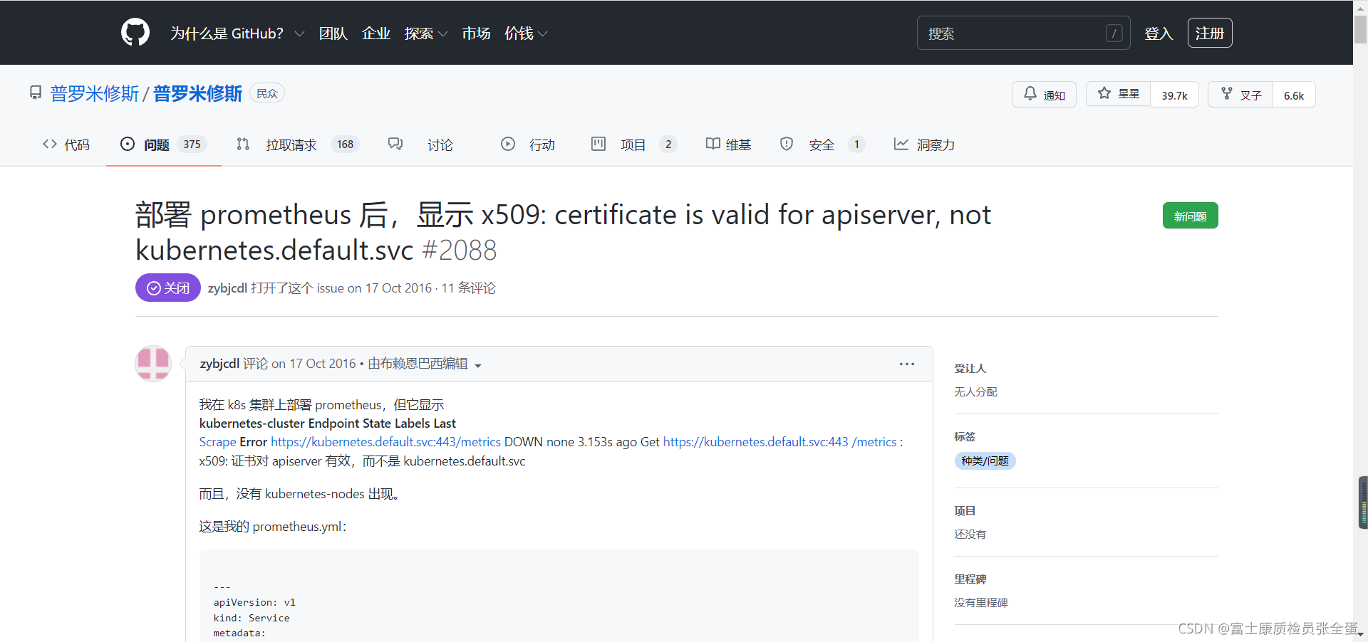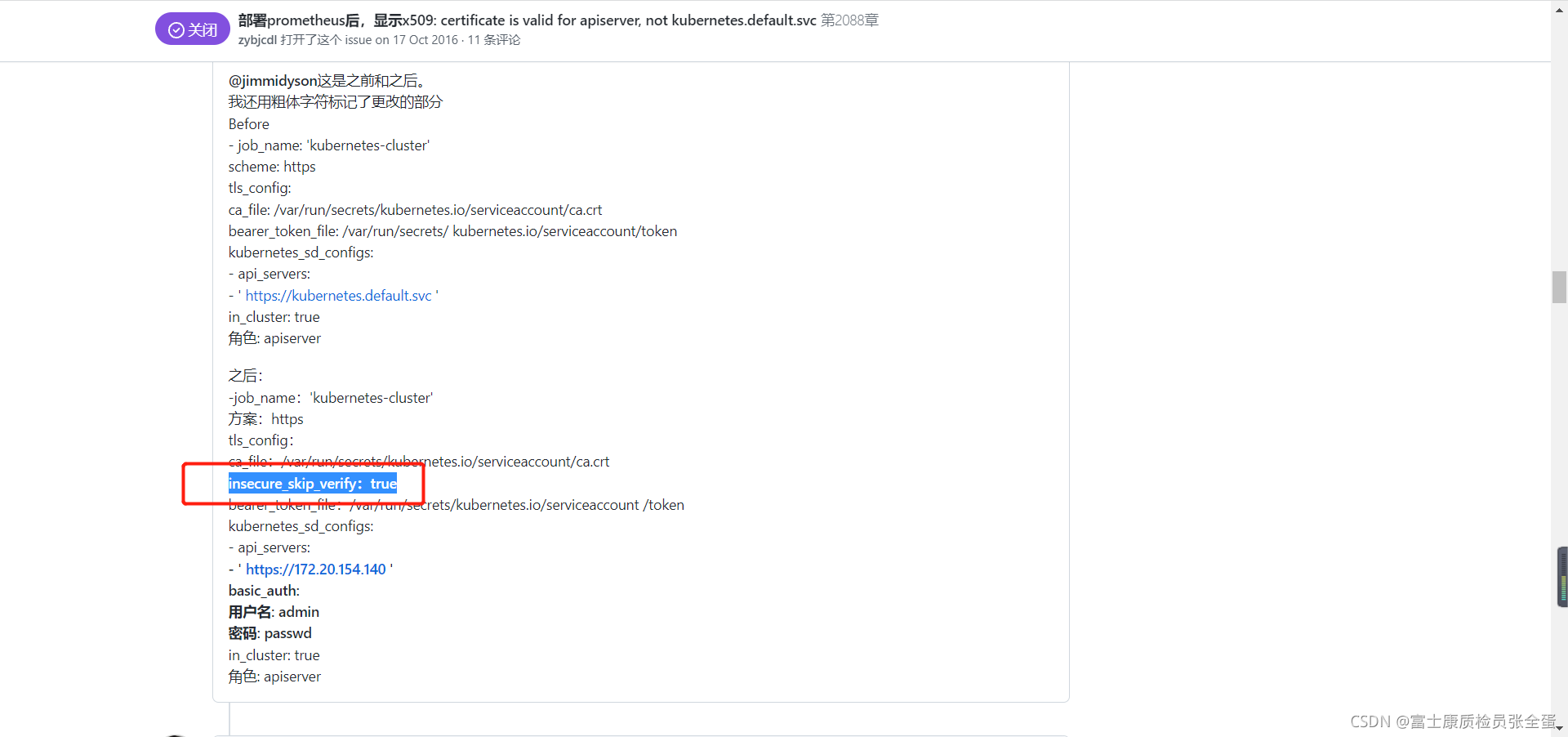 After deploy prometheus, it shows x509: certificate is valid for apiserver, not kubernetes.default.svc · Issue #2088 · prometheus/prometheus · GitHub https://github.com/prometheus/prometheus/issues/2088?