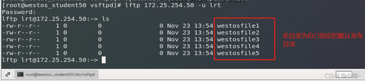 [root@westos_student50 ~]# lftp 172.25.254.50 -u westos