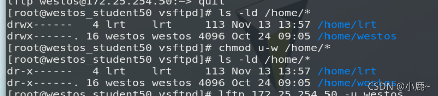 [root@westos_student50 vsftpd]# chmod u-w /home/*