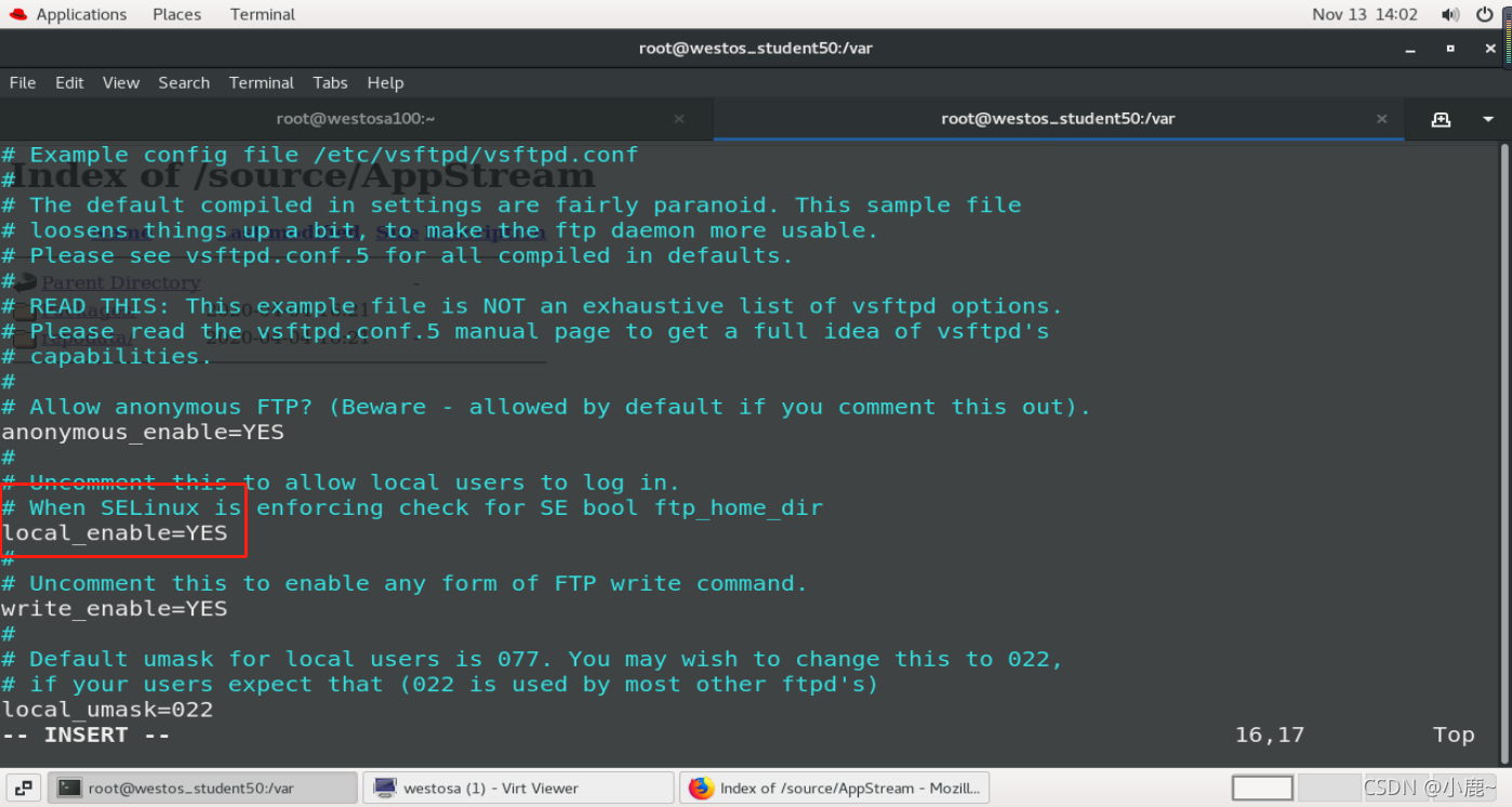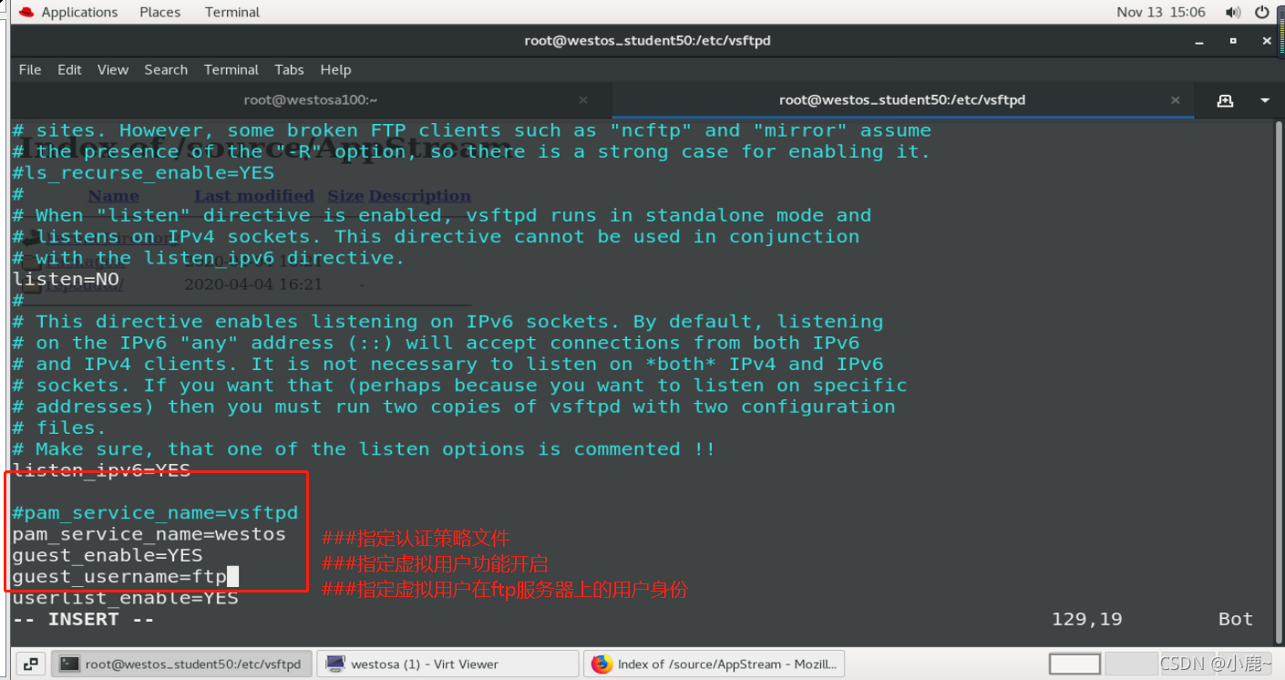 [root@westos_student50 vsftpd]# vim /etc/vsftpd/vsftpd.conf