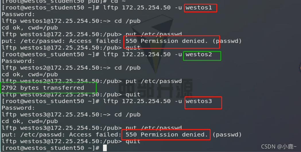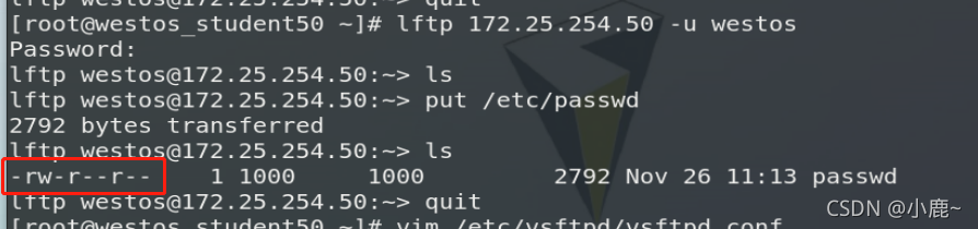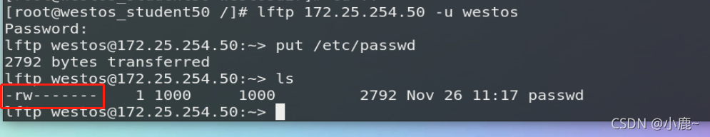 lftp westos@172.25.254.50:~> put /etc/passwd