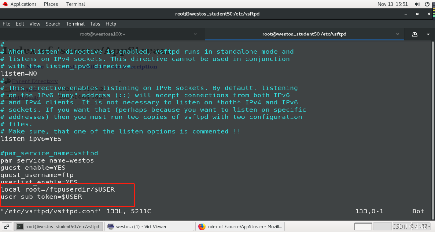?[root@westos_student50 vsftpd]# vim /etc/vsftpd/vsftpd.conf