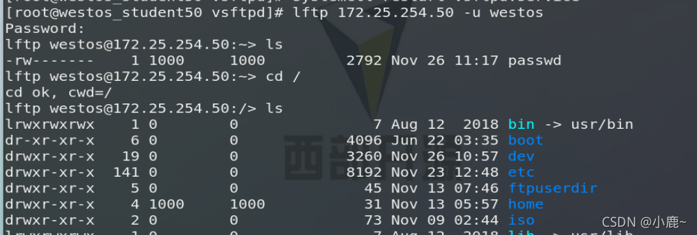 [root@westos_student50 vsftpd]# lftp 172.25.254.50 -u westos