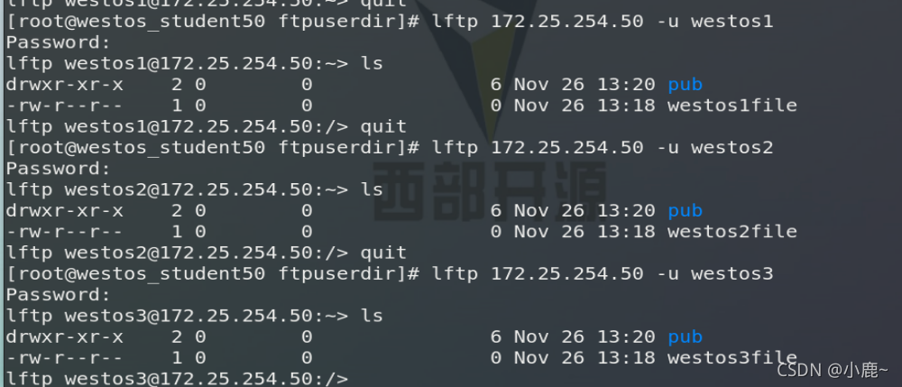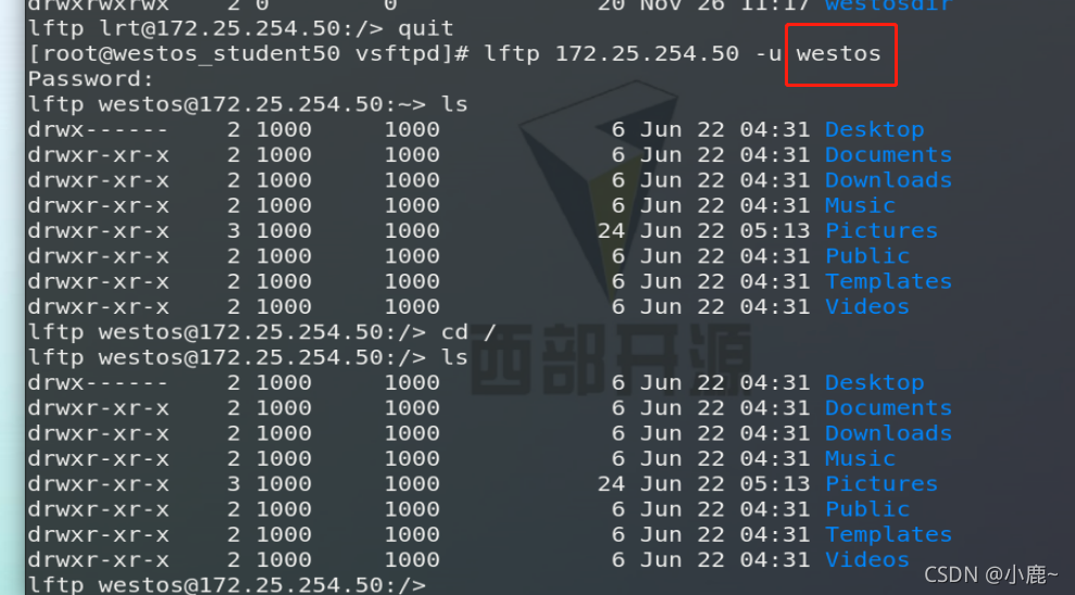 [root@westos_student50 ~]# lftp 172.25.254.50 -u westos1