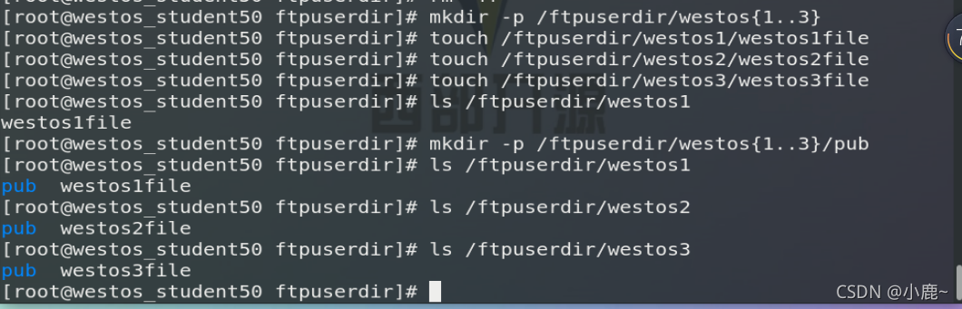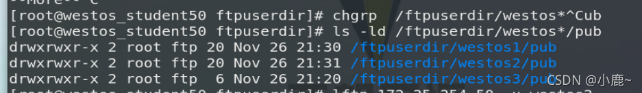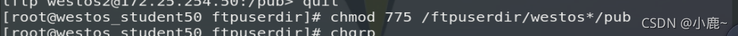 [root@westos_student50 ftpuserdir]# chmod 775 /ftpuserdir/westos*/pub