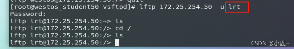 [root@westos_student50 vsftpd]# lftp 172.25.254.50 -u lrt