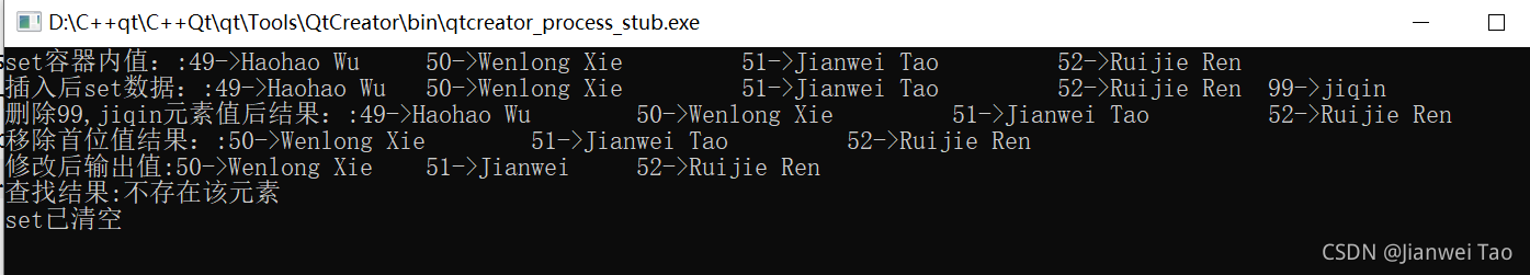 outputCont("删除99,jiqin元素值后结果:",cout,studentSet.begin(),studentSet.end());