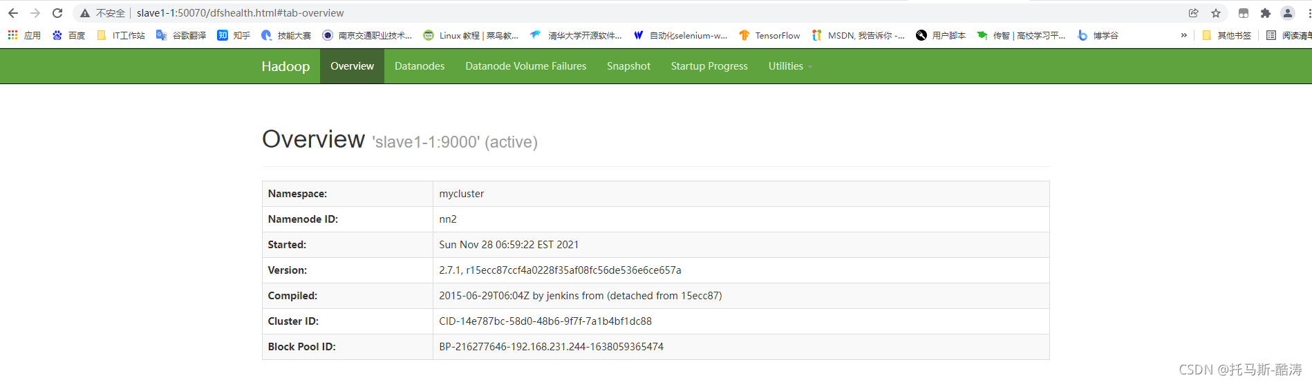 地址栏输入slave1-1:50070 如图所示