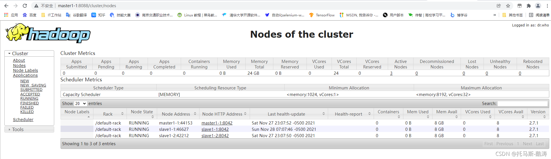 2、在浏览访问两个 namenode 和 resourcemanager web 界面
