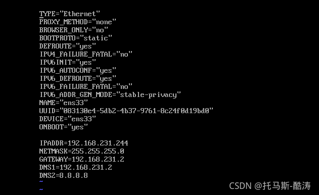 vi /etc/sysconfig/network-scripts/ifcfg-ens33