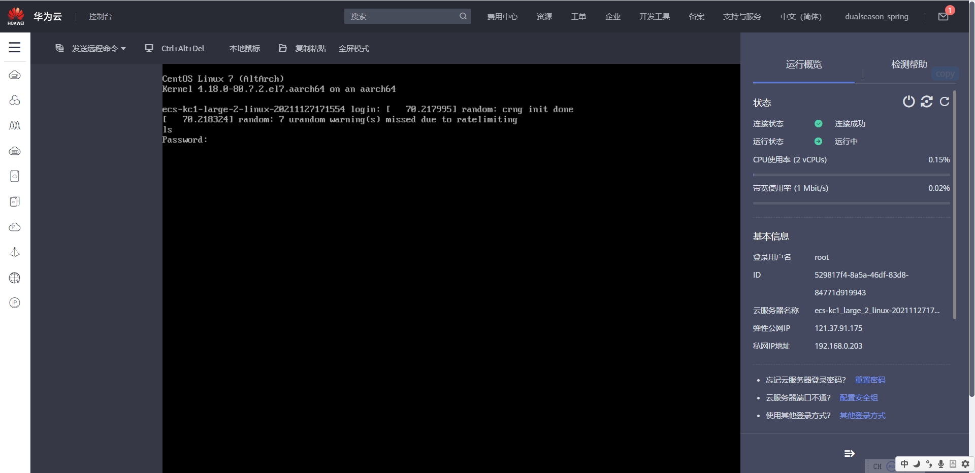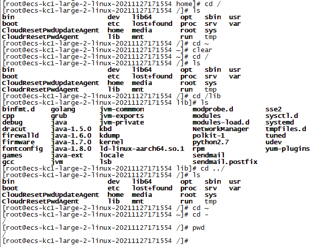 这里可能看得有些凌乱,但你只需要看[root@ecs-kc1-large-2-linux-20211127171554 /]这一行就是我自己写的命令了 对了,linux这里建议你加上目录才进去哦,比如进入root目录可以执行,这样会比较规范。