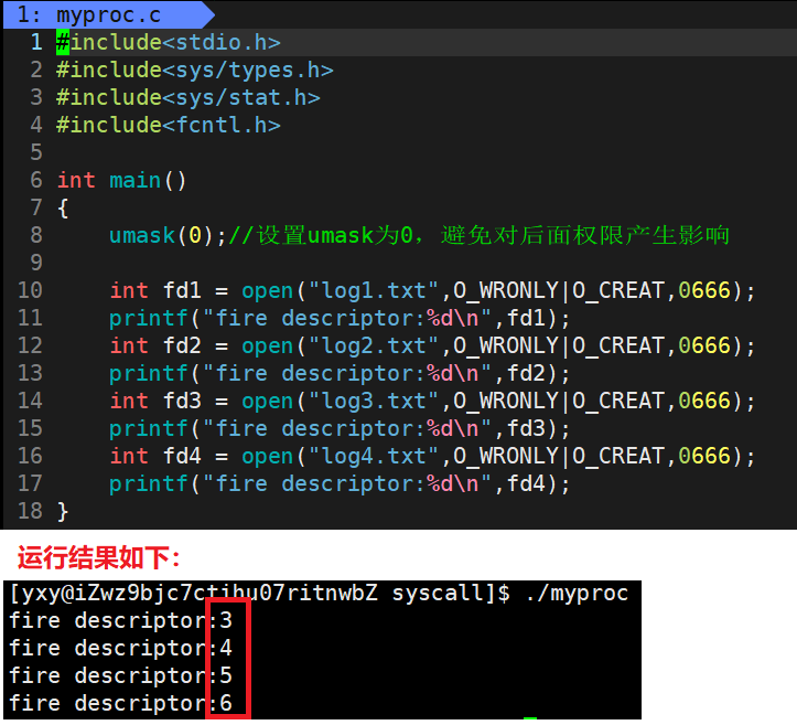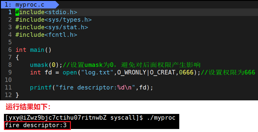 int fd=open("log.txt",O_WRONLY|O_CREAT,0666);