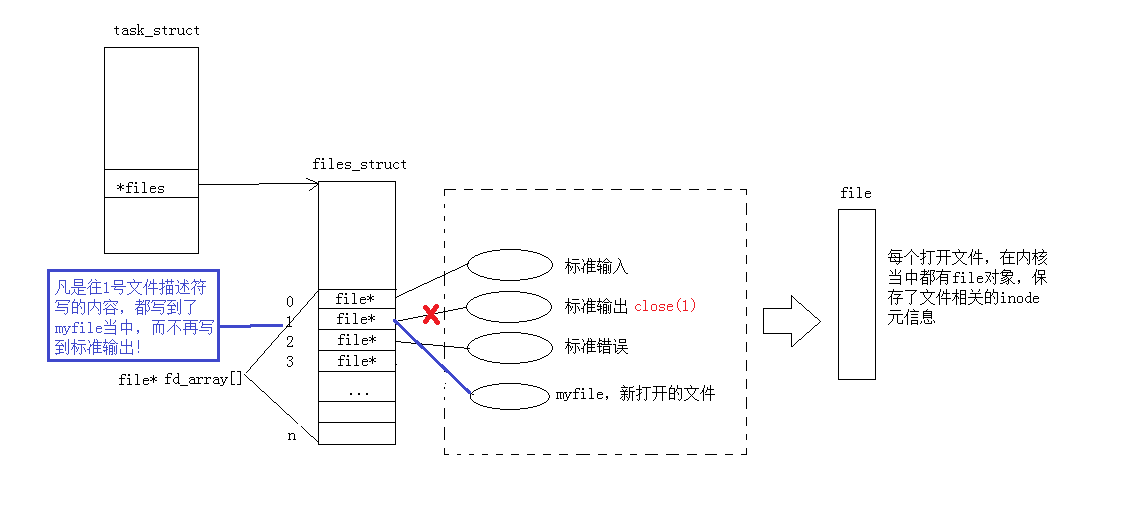 本质是修改files_struct表中的指针数组中指针所指向的内容