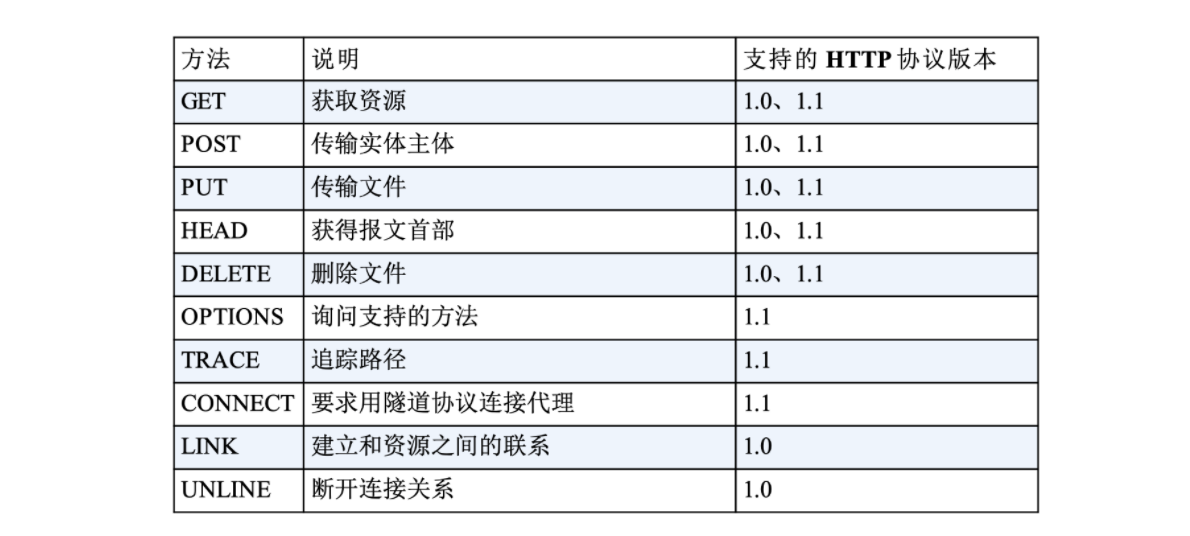 - HTTP1.1新增了24个错误状态响应码,如409(Conflict)表示请求的资源与资源的当前状态发生冲突;410(Gone)表示服务器上的某个资源被永久性的删除。