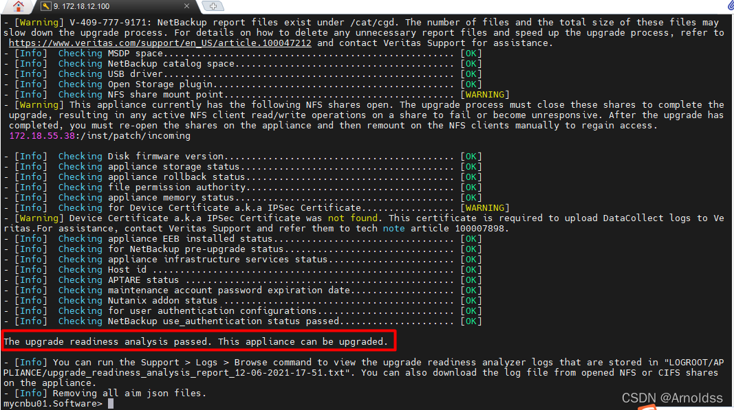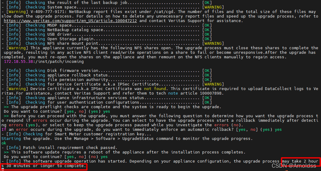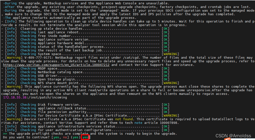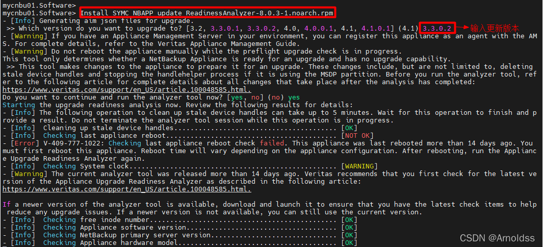 检查条目显示[WARNING]的可以忽略.看不到[NOT OK]后,即可安装升级包。
