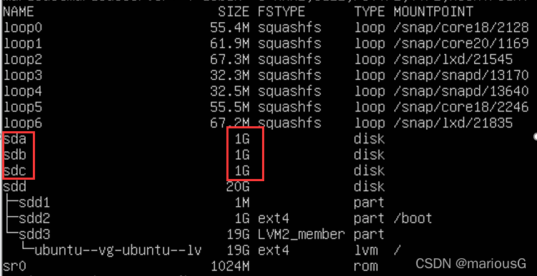 列出来的这三个1G的小磁盘,这就是用来做zfs的