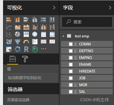 ?数据库中的数据表加载到Power BI Desktop后, 将会在Power BIDesktop的报表视图右侧的“字段”窗格中显示该表及其列。