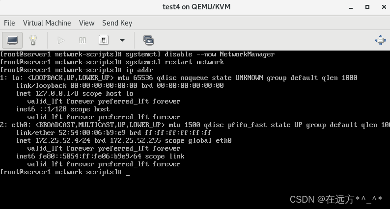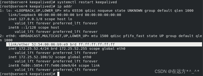 [root@server1 keepalived]# ip addr del 172.25.52.100/32 dev eth0